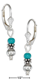 Sterling Silver Earrings: Ornate Silver And Simulated Turquoise Bead Earrings On Leverbacks