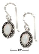 Sterling Silver Earrings: Oval Synthetic White Opal Earrings With Beaded Frame