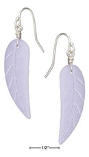 Sterling Silver Periwinkle Blue Lilac Etched Leaf Sea Glass Earrings On French Wire