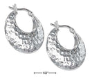 Sterling silver puffed tapered hammered hoop earrings with french locks