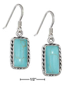 Sterling Silver Rectangle Simulated Turquoise Earrings With Rope Border