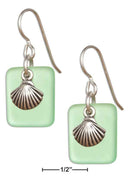 Sterling Silver Earrings: Seafoam Green Sea Glass Scallop Seashell Dangle Earrings