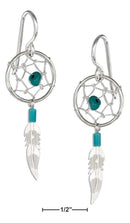 Sterling Silver Earrings: Simulated Turquoise Dreamcatcher Earrings With Feather