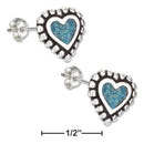 Sterling Silver Earrings: Simulated Turquoise Heart Earrings Stainless Steel Posts-nuts