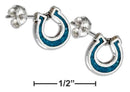 STERLING SILVER SIMULATED TURQUOISE HORSESHOE EARRINGS STAINLESS STEEL POSTS