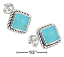 Sterling Silver Earrings: Square Roped Edge Simulated Turquoise Post Earrings