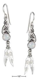 Sterling Silver Earrings: Synthetic Opal Howling Wolf With Feathers Earrings