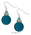 Sterling Silver Teal Aqua Ocean Blue Round Sea Glass Earrings Blue Glass Bead