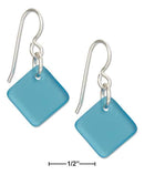 Sterling Silver Turquoise Bright Aqua Blue Square Sea Glass Earrings