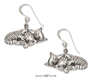 Sterling Silver Two Sleeping Kitty Cat Earrings On French Wires