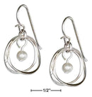 Sterling Silver Warped Circles With Freshwater Cultured Pearl Dangle Earrings