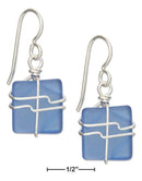 Sterling Silver Wire Wrapped Cornflower Blue Square Sea Glass Earrings