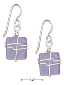 Sterling Silver Wire Wrapped Lavender Blue Square Sea Glass Earrings