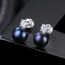 Women Classic Design Round Shape Natural Pearl Sterling Silver Stud Earrings