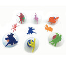 This set of large knob handle is perfect for a child's grasp and the high density foam is easy to clean. There is a label on the clear surface that makes alignment easy. Each set comes in a reusable, plastic case. The stamps work great with our paint or ink pads. Each set of 3" foam stamps includes 6 pieces. Sold as 3 sets for a total of 18 stamps.