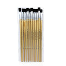 Fine grade natural black bristles. Seamless polished aluminum ferrules are double crimped to handles. Natural hardwood handles feature lacquered finish. Each pack includes 12 brushes with flat, 1/2" wide bristles and a long handle. Sold as 4 packs for a total of 48 brushes.
