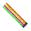 These pencils are shaped out into a wooden round pencil with a number 2 core. Each pencil has a unique brightly designed graphic printed around the surface. They are also tipped with ferrules and erasers.