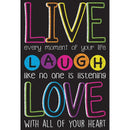 This material from Ashley is called SMART POLY. The material has been designed for charts in the classroom and home. These charts are strong, durable, water proof, and do not need lamination. They can be displayed like any chart with staples, pins, etc. The surface is designed for dry erase and water based markers. Smart Poly Live, Laugh, Love Chart measures 13" x 19" and features a dry-erase, glossy surface. 0.45mm.