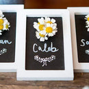 This unique multipurpose chalkboard can decorate and provide a sweet message at the same time. Makes a great place marker, escort sign, table greeting and more. Your guests are sure to be even more impressed when invited to take them home as favors at the conclusion of your big day.
