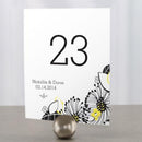This collection is a flawless accompaniment to any black and white theme, with a hint of your choice of accent color it has just the right amount of eye-catching flair.Table Numbers are the ideal way to direct guests easily to their tables without any confusion. Use them with our specially designed Table Number Holders so they are easily visible on the table, or pair them with any of the card holders.Printed on both sides. paper weight - 80 lbs material - smooth cover paper imperial - 3.875x5" H metric - 9.8x12.7cm H