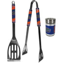 This stainless steel 2pc BBQ grill set is a tailgater's best friend. The colorful and large team graphics on each of the barbecue tools let's everyone know you are a fan! The set in includes a spatula and tongs with the Florida Gators logo. The tool set comes with a compact shaker is 2 inch tall with a twist top that closes off the holes at the top making it perfect for travel preventing those messy spills. The shaker has wide holes perfect for keeping your pepper seeds or cheese toppings.