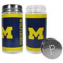No tailgate party is complete without your Michigan Wolverines salt & pepper shakers featuring bright team graphics. The glass shakers are 3.75 inches tall and the screw top lids have holes that spell out P and S. These team shakers are a great grill accessory whether you are barbecuing on the patio, picnicing or having a game day party. Officially licensed College product Licensee: Siskiyou Buckle. Matching glass salt & pepper shakers that are 3.75 inches tall. Lids feature a P and S design. Whether you are camping or tailgating these great looking shakers will be a hit. The bright team graphics will make you the envy of any Michigan Wolverines fan