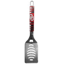 Our tailgater spatula really catches your eye with flashy chrome accents and vivid Oklahoma Sooners digital graphics. The 420 grade stainless steel spatula is a tough, heavy-duty tool that will last through years of tailgating fun. The spatula features a bottle opener and sharp serrated edge. Officially licensed College product Licensee: Siskiyou Buckle. Spatula is 420 grade stainless steel. Convenient sharp, serrated edge. Handy bottle opener. Crisp chrome graphics with Oklahoma Sooners logo and colors