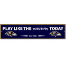 This motivational plaque is perfect for hanging over the doorway of your fan cave reminding you to play like your champion Baltimore Ravens! The sign is 20 inches wide and made of light-weight stamped aluminum. The bright team colors and classic design make this a must-have home dŽcor accessory that would look great in any game room, living room or office!Officially licensed NFL product Licensee: Siskiyou Buckle. 20 inch road sign wall plaque perfect home dŽcor for your game room or office. Light-weight, stamped aluminum mounts easily to any wall. Transform any space into an instant fan cave with this stylish team sign. Bright Baltimore Ravens colors complete this motivational fan favorite