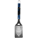 Our tailgater spatula really catches your eye with flashy chrome accents and vivid Carolina Panthers digital graphics. The 420 grade stainless steel spatula is a tough, heavy-duty tool that will last through years of tailgating fun. The spatula features a bottle opener and sharp serrated edge. Officially licensed NFL product Licensee: Siskiyou Buckle. Spatula is 420 grade stainless steel. Convenient sharp, serrated edge. Handy bottle opener. Crisp chrome graphics with Carolina Panthers logo and colors