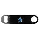 This heavy-duty steel opener is extra long, with a durable vinyl covering. The extra length provides more leverage for speed opening and the opener features a large printed Dallas Cowboys logo. Officially licensed NFL product Licensee: Siskiyou Buckle. The bartendar's best friend. Extra long steel speed opener. Strong vinyl covering. Dallas Cowboys printed emblem