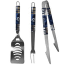 Our tailgater BBQ set really catches your eye with flashy chrome accents and vivid Los Angeles Rams digital graphics. The 420 grade stainless steel tools are tough, heavy-duty tools that will last through years of tailgating fun. The set includes a spatula with a bottle opener and sharp serated egde, fork and tongs.Officially licensed NFL product Licensee: Siskiyou Buckle. Tools are 420 grade stainless steel. Set includes: spatula, fork and tongs. The heavy duty spatula features a bottle opener and serrated edge. Crisp chrome graphics with Los Angeles Rams logo and colors
