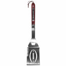 Any chef would be proud to use this top-of-the-line rosewood spatula. The full tang 410 grade stainless steel blade is thick and built to last with a ton of extra features that set this grilling tool above the rest. The blade comes with football shaped cut-outs, a side with deep grooves that are perfect for grill scraping, a side with a sharp serrated edge for cutting and a bottle opener feature so the Chef can stay hydrated while preparing all of the food for a perfect game-day party. The exceptional quality of this tool makes it perfect for any grilling situation whether you are out on the patio, camping or picnicking the versatility of this tool eliminates the need to clutter you prep area. If you are on the road tailgating the Chef's Choice Oakland Raiders spatula will make you the envy of every fan!Officially licensed NFL product Licensee: Siskiyou Buckle. Exceptional quality full tang spatula with geniune rose wood handle. The sturdy 410 stainless steel blade comes with football shaped cut-outs, deep grill scraping grooves, serrated cutting edge and a handy bottle opener making this a must-have grilling accessory. The high-quality construction and materials make this the perfect tool for outdoor barbecues, patio parties, picnics and will make you the envy of all the fans while tailgating. The handle has a stainless steel inset emblem with an expertly etched Oakland Raiders logo