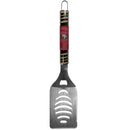 Our tailgater spatula really catches your eye with flashy chrome accents and vivid San Francisco 49ers digital graphics. The 420 grade stainless steel spatula is a tough, heavy-duty tool that will last through years of tailgating fun. The spatula features a bottle opener and sharp serrated edge. Officially licensed NFL product Licensee: Siskiyou Buckle. Spatula is 420 grade stainless steel. Convenient sharp, serrated edge. Handy bottle opener. Crisp chrome graphics with San Francisco 49ers logo and colors