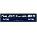 This motivational plaque is perfect for hanging over the doorway of your fan cave reminding you to play like your champion Seattle Seahawks! The sign is 20 inches wide and made of light-weight stamped aluminum. The bright team colors and classic design make this a must-have home dŽcor accessory that would look great in any game room, living room or office!Officially licensed NFL product Licensee: Siskiyou Buckle. 20 inch road sign wall plaque perfect home dŽcor for your game room or office. Light-weight, stamped aluminum mounts easily to any wall. Transform any space into an instant fan cave with this stylish team sign. Bright Seattle Seahawks colors complete this motivational fan favorite