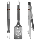 Our Arizona Coyotes stainless steel 3 pc BBQ tool set includes a large spatula with built in bottle opener, heavy duty tongs, and large fork. All the tools feature a team logo on the handle.Officially licensed NHL product Licensee: Siskiyou Buckle. Tools are 420 grade stainless steel. Set includes: spatula, fork and tongs. The heavy duty spatula features a bottle opener and serrated edge. Arizona Coyotes emblem on each tool