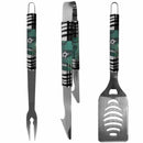 Our tailgater BBQ set really catches your eye with flashy chrome accents and vivid Dallas Stars digital graphics. The 420 grade stainless steel tools are tough, heavy-duty tools that will last through years of tailgating fun. The set includes a spatula with a bottle opener and sharp serated egde, fork and tongs.Officially licensed NHL product Licensee: Siskiyou Buckle. Tools are 420 grade stainless steel. Set includes: spatula, fork and tongs. The heavy duty spatula features a bottle opener and serrated edge. Crisp chrome graphics with Dallas Stars logo and colors