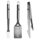 Our Nashville Predators stainless steel 3 pc BBQ tool set includes a large spatula with built in bottle opener, heavy duty tongs, and large fork. All the tools feature a team logo on the handle.Officially licensed NHL product Licensee: Siskiyou Buckle. Tools are 420 grade stainless steel. Set includes: spatula, fork and tongs. The heavy duty spatula features a bottle opener and serrated edge. Nashville Predators emblem on each tool