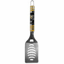 Our tailgater spatula really catches your eye with flashy chrome accents and vivid Pittsburgh Penguins digital graphics. The 420 grade stainless steel spatula is a tough, heavy-duty tool that will last through years of tailgating fun. The spatula features a bottle opener and sharp serrated edge. Officially licensed NHL product Licensee: Siskiyou Buckle. Spatula is 420 grade stainless steel. Convenient sharp, serrated edge. Handy bottle opener. Crisp chrome graphics with Pittsburgh Penguins logo and colors