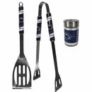 This stainless steel 2pc BBQ grill set is a tailgater's best friend. The colorful and large team graphics on each of the barbecue tools let's everyone know you are a fan! The set in includes a spatula and tongs with the Penn St. Nittany Lions logo. The tool set comes with a compact shaker is 2 inch tall with a twist top that closes off the holes at the top making it perfect for travel preventing those messy spills. The shaker has wide holes perfect for keeping your pepper seeds or cheese toppings.