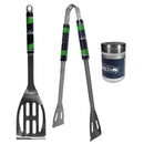 This stainless steel 2pc BBQ grill set is a tailgater's best friend. The colorful and large team graphics on each of the barbecue tools let's everyone know you are a fan! The set in includes a spatula and tongs with the Seattle Seahawks logo. The tool set comes with a compact shaker is 2 inch tall with a twist top that closes off the holes at the top making it perfect for travel preventing those messy spills. The shaker has wide holes perfect for keeping your pepper seeds or cheese toppings.