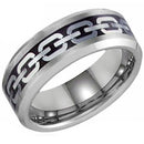 Black Platinum White Tungsten Carbide Keychain Beveled Edges Ring