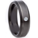 Black Tungsten Carbide Beveled Edges Ring With 0.04ct Genuine White Diamond