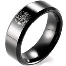 Black Tungsten Carbide Firefighter Beveled Edges Ring