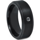 Black Tungsten Carbide Step Edges Ring With 0.04ct Genuine Black Diamond