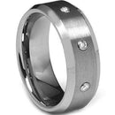 White Tungsten Carbide Beveled Edges Ring With 0.12ct Genuine White Diamond