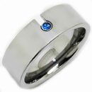 White Tungsten Carbide Ring With Created Blue Sapphire
