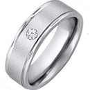 White Tungsten Carbide Step Edges Ring With 0.04ct Genuine White Diamond