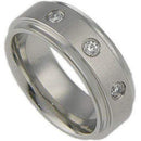 White Tungsten Carbide Step Edges Ring With 0.12ct Genuine White Diamond