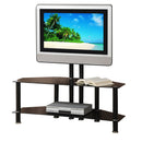 This TV stand feature a modish design and style, with 2 black glass shelves, this becomes a complete TV entertainment media center. Enough spacing between the shelves allow you to place other media components easily. Its round black metal legs give sturdy and rigid support to the glass shelves. You can adjust the height of your TV from 18" to 48". It can support a 36" / 110LB TV.