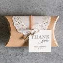 This pretty kraft pillow box with paper doily and red twine is perfectly suited for a vintage or rustic wedding theme. Complete with boxes, doilies and red twine for wrapping, this kit will undoubtedly show your guests how much you care. For the ultimate personal touch add a personalized tag to make it really stand out.